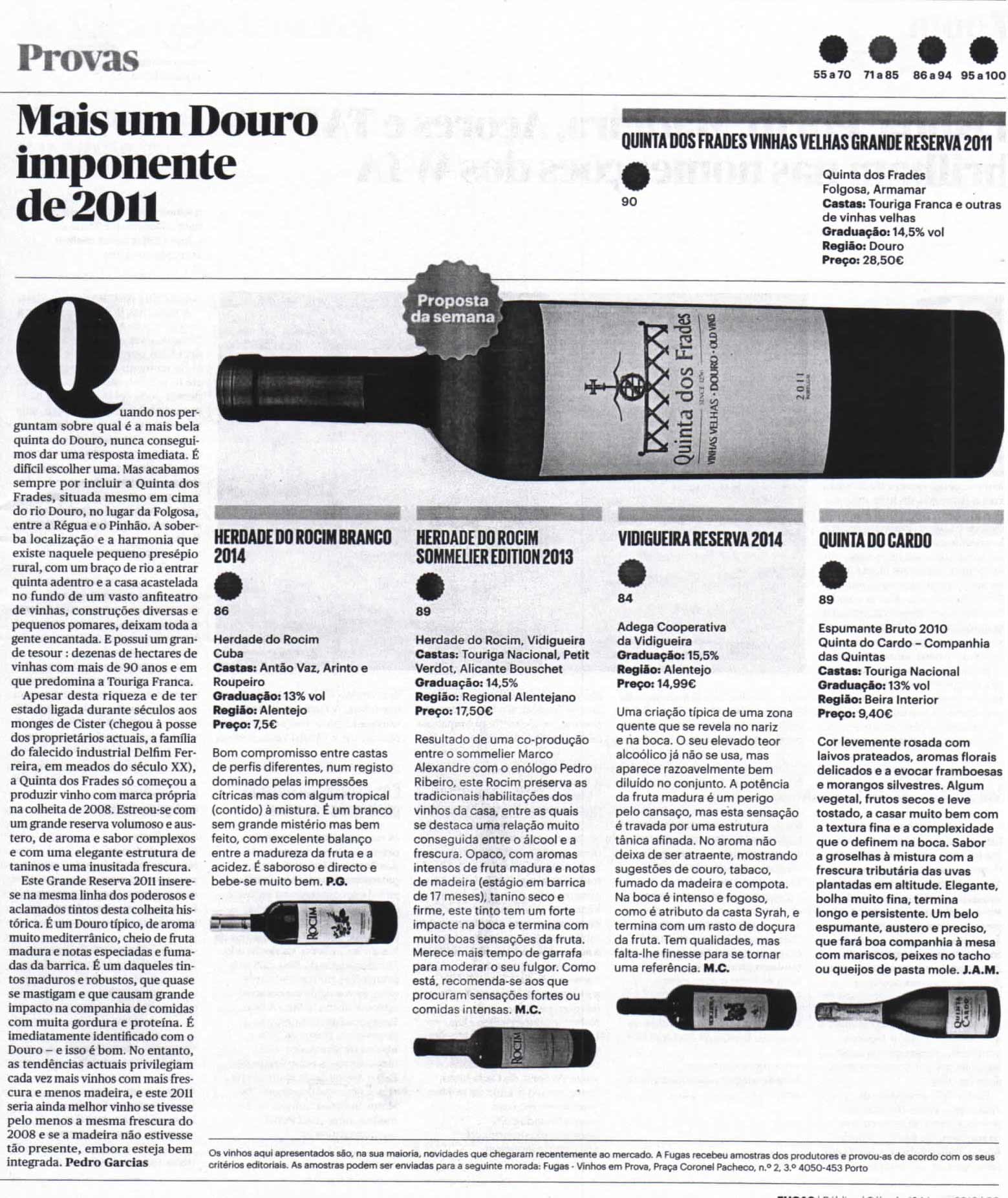 • Highlight on the Quinta dos Frades Vinhas Velhas Grande Reserva 20122 wine in the “Fugas” section of the newspaper Público of 12 March 2016